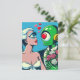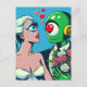 Eine Mit Augen Alien Frauen und grüner Roboter in Postkarte