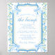 Die A-Nachricht vom Blue Floral Baby Shower Poster ruft ein Gefühl von Nostalgie und zeitloser Eleganz hervor, perfekt für Familien, die eifrig auf die Ankunft eines kleinen Bündels von Freude vorbereiten. Das Hotel besticht durch seine reizvolle Kombination aus Blau- und Weißtönen und versetzt die Gäste in eine vergangene Zeit klassischer Eleganz und Vintagen Charmes. Die von Hand gezeichnet Elemente fügen eine persönliche Touch hinzu und verleihen dem Design Wärme und Charakter. Eingebettet in den Vintagen Rahmen mit zarten Bögen lädt das Objekt die Gäste ein, in die Vergangenheit zurückzukehren und sich der fröhlichen Vorfreude anzuschließen, einen wertvollen Baby in die Welt zu begrüßen. Klicken Sie auf die Schaltfläche "Anpassen", um diese Vorlage zu personalisieren. Sie können Stil, Farben und Größen ändern. Bows können verschoben und vergrößert werden. Matching-Elemente verfügbar.
