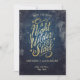Eine Nacht unter den Sternen Save the Date Flachkarte mit eleganter Handschrift von "Eine Nacht unter den Sternen". Dieses Design umfasst dunkelblaue, goldene und sternenförmige Elemente. Enthält eine Vorlage zur persönlichen Anpassung.