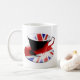 Eine klassische englische Tasse Tee, passend verziert in der Gewerkschafts-Jackflagge