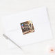 Eine Niedliche, flauschige Katze, die eine Feder j Quadratischer Aufkleber
