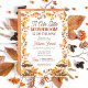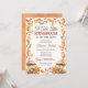 "Ein Niedlicher kleiner Pilzsaal ist unterwegs!" Herbstdusche mit farbenfrohen Blätter und Pilzen. Das hintere Design weist einen bedrückten Aquarell-Look dusky peach Hintergrund auf. Dieses geschlechtsneutrale Design wäre großartig für ein Mädchen oder einen Jungen, die bei einem Baby-Duschfest versinken.