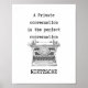 "Ein privates Gespräch ist das perfekte Gespräch" von Nietzsche aus "Mensch, Allzu Mensch: Ein Buch für freie Geister." Zitat in klassischen Schreibmaschinen-Schriftart mit einer Vintagen Schreibmaschinenillustrierung, um den Philosophen und die Zeit zu ehren. Dies ist ein hervorragendes Geschenk für Philosophie-Liebhaber, Introvertierte und Nietzsche-Fans. Wusstest du, dass Nietzsche der erste Philosoph war, der eine Schreibmaschine benutzte (ein modernes Laptop)? Die Schreibmaschine war so einzigartig wie ihr Besitzer (Malling-Hansen Schreibball) und nannte sie heute sogar Nietzsches Schreibmaschine. Entdecke mehr Zitate aus seinen Büchern in meinem Laden! Prost!