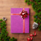 eine Rolle rosa Geschenkpapier mit glänzender Oberfläche, teilweise abgerollt, um den gerollten Rand auf der linken Seite zu zeigen