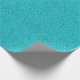 eine Rolle texturiertes tealfarbenes Geschenkpapier mit leichtem Glanz, an einer Ecke eingerollt, um eine weiße Innenrolle sichtbar zu machen, vor einem schlichten weißen Hintergrund
