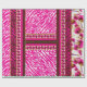 Das Design scheint ein Design für ein Kleidungsstück, möglicherweise ein traditionelles Kleid oder Stoff. Eine ausführliche Beschreibung: ・ Top Section: Ein Blumenmuster mit rosa Blume und grünen Blätter auf weißem Hintergrund. Die Halskette ist mit verzierten rosa- und goldfarbenen Designs verziert. ・ Mittlere Band: Enthält einen Tierdruck in Rosa und Weiß, umgeben von zwei dünnen goldenen Streifen. ・ Untere Sektion: Wiederholt das Muster des Tierdrucks in großem Umfang. Die Kombination von Blumen- und Tierdrucken schafft ein lebendiges und kühnes Modestatement, möglicherweise für kulturelles Kleid.