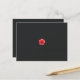 eine rote Blume mit schwarzer Mitte auf schwarzem Postkarte