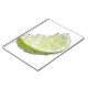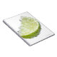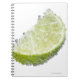 Eine saftig reife Bio Limone Keilfrucht untergetau Notizblock