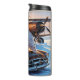 Eine Schneeeule, ein Flugzeug und ein Oldtimer Thermosbecher