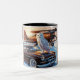 Eine Schneeeule, ein Flugzeug und ein Oldtimer Zweifarbige Tasse