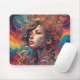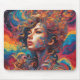 Eine schöne Frau, die in einer Farbwolke verschwindet und in einer digitalen Zeichnung erschaffen wird.