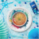 Ein niedlicher Cartoon von Ramen Noodles, grünen Zwiebeln und gekochten Eiern. Teller für eine Ramen-Geburtstagsparty.