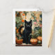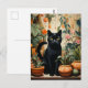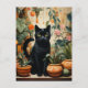 Eine schwarze Katze mit Hauspflanzen Postkarte