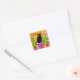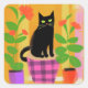Eine schwarze Katze mit rosafarbenen Hauspflanzen, Quadratischer Aufkleber