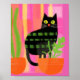 Eine schwarze Katze mit rötlich-rosa-grünem Orange Poster