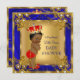 Eine sehr Royal Little Prince Baby Dusche. Baby Dusche Red Gold und Royal Blue Boy Baby Dusche. Niedlicher Baby Ethnic African American Boy in Red Pants und Red Slippers. Party Einladung "es ist ein Junge". Elegantes goldfarbenes Diamant-Blumendesign mit niedlichem Baby-Junge und rot-blau-goldener Krone. Vintage Babydusche.