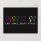 Gegen den Krieg der Republikaner gegen die Frauen mit einem Regenbogen von Symbolen der Venus/Frau und den Worten "Eine Stimme, viele Stimmen".