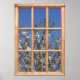 Genießen Sie die Frühlingsluft und bewundern Sie die Blüte und die neuen Blätter auf einem Baum. Diese Imitate Fensteransicht hat eine Szene im Frühling, an einem sonnigen Tag mit blauem Himmel aufgenommen. Die Kirschblüte und die frischen Blätter versprechen wärmere Tage. Der Holzrahmen hat 9 Scheiben und ist ein warmer Kiefernschatten. Ideal für einen Ausblick auf eine fensterlose Wand.