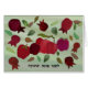 Grafische Illustration der Granatäpfel, der Äpfel und des Blätter. Hebräische Übersetzung von L'Shanah Tovah Umetuka: Ihnen ein süßes, gutes Jahr für das jüdische neue Jahr wünschen. Hebräische Übersetzung von L'Shanah Tovah Tikatevu Vtehatemu: Mögen Sie für ein gutes Jahr inscibed und versiegelt werden. Segen wird auf den Äpfeln gesagt, die in den Honig eingetaucht werden, der ein süßes Jahr symobolizing ist und dass unsere Verdienste wie die Samen eines Granatapfels so zahlreich sein sollten.