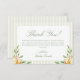 Feiern Sie die Ankunft Ihres kleinen Freudenbündels mit unserer A Sweet Little Pear Baby Shower Pastel Green Stripes Dankeschön Card. Dieses charmante Design besticht durch sanfte Pastellgrün- und Gelbtöne, zarte Birnen- und Grüntücher und eine Touch von zauberhafter Eleganz im pastellgrünen Streifen. Diese Dankeschön-Karte ist ideal für geschlechtsneutrale und fruchtig gestaltete Babyduschen und sorgt für eine frische, unterhaltsame und süße Atmosphäre.