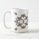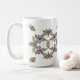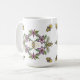 Eine Tasse mit Blume und Bienen, die sich perfekt