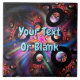 Ein mehrfarbiges Fraktal-Bild mit vielen Toroiden im Negativ-Weltraum auf sternigem Hintergrund. Passen Sie Ihren eigenen Text an.