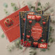 Eine Touch der Gotik, des Herzens und der ewigen Verbindung. Das Design zeichnet sich durch ein dunkles, elegantes Hintergrunddesign aus, das sofort Aufmerksamkeit zeichne. Mehrere leuchtend rote Herzen, von denen einige scheinbar in Tartrops verwandelt wurden, hängen von zarten, dünnen Saiten und verleihen der Karte eine spielerische und romantische Touch. Das Zentrum wird von einem kunstvoll gestalteten, roten Rahmen dominiert, der mit einer zarten Rose, die Liebe und Leidenschaft symbolisiert, dekoriert ist. Am unteren Ende der Karte schmücken üppige rote Rosen mit üppiger Vegetation das romantische Ambiente.