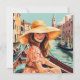 Eine Touristenin in Venedig Holiday Card Sommerurlaub in Europa Karten Original Illustrationen von Roger Smith. Die Ferienkarte 5.25" x 5.25" ist für das ganze Jahr geeignet. Premium Dick Ultra-Diick Card 32 pt Dicke/ 240 lb Gewicht Eggshell Weiße Oberfläche, weiche Baumwolle Textur Papier ist einfach zu schreiben und wird nicht verschmieren. High Definition Made und gedruckt in den USA.