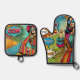 Eine trendige Illustration im Retro-Pop-Stil Ofenhandschuh & Topflappen-Set