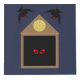Dieser phantastische Würfel aus Foto zeigt ein grafisches Bild eines braunen Nestkastens in einem Uhrturm, in dem zwei mit Augen rote Ravenen hineinfliegen, einer von den links und einer von den rechten. Die Ravens sind schwarz und haben rote Augen. Es gibt auch einen dritten Raven, der sich in der schwarzen Dunkelheit des Nestes versteckt, wobei nur die gruseligen roten Augen im Dunkeln sichtbar sind. Über dem Eingang des Nestes befindet sich eine Uhr mit einem gelben Gesicht und dunkleren römischen Ziffern. Statt 12 an der Spitze gibt es eine 13. Das Design erhält seinen Namen von einer Gruppe von Ravens, die als Unfreundlichkeit bekannt ist.