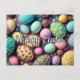 Auf dieser einzigartigen Postkarte finden Sie einige bunte, kreative und essbare Ostereier.