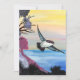 Originelle Malerei eines Vogels, der in der Luft an einem Berg aufsteigt. Erstellt mit Acrylfarbe.