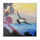 Originelle Malerei eines Vogels, der in der Luft an einem Berg aufsteigt. Erstellt mit Acrylfarbe.