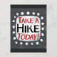 "Take A Hike Today" ist ein niedliches Textdesign in Grau mit schwarzem und rotem Text. Er sitzt auf einer weißen Akzent-Form und niedliche weiße Polka-Punkte, die ihn umgeben.