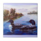 Von einer ursprünglichen Ölmalerei von Brenda Thour eines Paares Loons auf einem See während eines Sonnenuntergangs der schönen Blues und der Purpur. Vorlage verkauft für eine Wohltätigkeitauktion. Copyright durch Brenda Thour 2004.