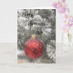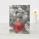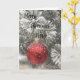 Ein Weihnachtsbaumzweig mit einem roten, schneebedeckten Nobelknochen und einer Grußkarte für den Pastor und seine Familie