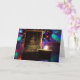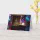 Diese schöne Weihnachtsgrüßkarte mit einer hellen Kerze liegt vor einer Karte mit einem leuchtenden Weihnachtsbaum, mit farbenfrohen Urlaublichtern, die den Hintergrund sanft erhellen. Das warme Licht der Kerze schafft eine gemütliche und festliche Atmosphäre. Diese Karte enthält ein klassisches Urlaubsfoto und handgezeichnet Kunstwerke des Cheffotografen von God Bless the Keg Publishing LLC, Paul John Hausleben.