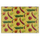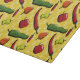 Ein Peri-Peri, Friggitello, Habanero, Rocoto, Jwala und Shishito-Chili-Pfeffer sind mit Motiven aus der Region verziert, in der sie ursprünglich angebaut wurden oder üblicherweise gegessen werden, und sitzen auf einem gelben Hintergrund mit Tattoos, die von einheimischen Völkern des Amazonasgebietes getragen werden, um ein lustiges, sich wiederholendes Muster zu schaffen, das die Herkunft und die Ausbreitung dieser leckigen, fruchtigen und fruchtigen, und