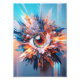 Eine lebendige und surreale Darstellung konzentriert sich auf ein hochdetailliertes Auge, umgeben von einer Explosion abstrakter und farbenfroher Elemente. Die Komposition besteht aus einer Mischung aus Federn, Bio Formen und nach außen strahlenden Farbenstößen, die eine dynamische und faszinierende Szene schaffen. Digitale Kunstfotografie CS5
