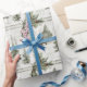 Eine Winterwaldlandschaft mit einem Bären und eine Geschenkpapier