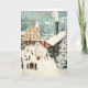 Diese bezaubernde Szene fasziniert die Magie eines schneebedeckten Dorfes an einem ruhigen Wintertag. Ein roter und warmer Dampfzug wartet auf den Bahnhof, während sich die Menschen unter einem Turm versammeln und Lächeln und Gruß austauschen. Ein sanfter Schneefall bedeckt die Landschaft, mit festlichen Dekorationen, die auf die Freude der Ferienzeit hindeuten.