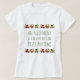 Dieser T - Shirt, den man in der Wohnung tragen kann, hat die Worte, in dunkelgrün, "Eine Wohnung ist ein Freund, den man jederzeit besuchen kann" und ist mit einer Grenze von bunten Gemüse dekoriert.