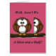 Niedliche kleine braune, weiße und schwarze Eulen, die auf den Ästen stehen. Genießen Sie diese kuscheligen, niedlichen Eulen mit der lustigen Unterschrift: "Sind wir nicht ein Hund und eine Halbe?" auf vielen Zazzle-Produkten. Weitere Informationen finden Sie unter Zazzle.com/Soaringstars.