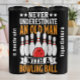 Diese humorvolle Grafik zeigt einen roten Bowlingball und sieben Bowling-Buttone. Das Design hat ein bedrücktes, Vintages Gefühl und enthält den witzigen Text "NIE UNDERESTIMATE AN OLD MAN WITH A BOWLING BALL", der eine einfache und lustige Grafik für einen leidenschaftlichen Bowler schafft.