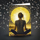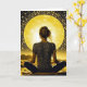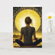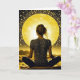 Hübsche spirituelle Karte wünscht einem Freund einen friedlichen Tag. Mystische Ai-Kunst zeigt eine ätherische Szene einer Frau, die vor Vollmond an einer sternigen Nacht meditiert.