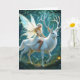 Eine schöne Fee in Weiß reiten auf einem weißen Zauberhirsch. Hübsche Märchenwald-Geburtstagskarte für sie. Geburtstagskarte für einen Freund oder ein Familienmitglied. Bringen Sie mit dieser hübschen Karte jemandem etwas Magie in den Tag.