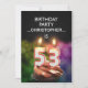 Fügen Sie einen Namen hinzu, um diese einzigartige Party Einladung zu individualisieren.Eine lustige 53. Geburtstagsfeier mit glücklichen Kerzenzahlen, die auf einem Schokoladenkuchen brennen. Sehen Sie sich die ganze Palette an Einladungen und Karten in meinem Geschäft an.