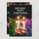 Fügen Sie einen Namen hinzu, um diese einzigartige Party Einladung zu individualisieren.Eine lustige 71. Geburtstagsfeier mit glücklichen Kerzenzahlen, die auf einem Schokoladenkuchen brennen. Sehen Sie sich die ganze Palette an Einladungen und Karten in meinem Geschäft an.