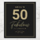 Einfaches Schwarz & Gold "50 and Fabulous" Geburtstagsschild mit eleganter Typografie. Passen Sie es mit Alter, Name, Party und Veranstaltungsort einfach an. Perfekt für Geburtstagsgeschenke oder Gastgeschenk.