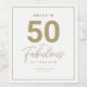 Einfaches Schwarz & Gold "50 and Fabulous" Geburtstagsschild mit eleganter Typografie. Passen Sie es mit Alter, Name, Party und Veranstaltungsort einfach an. Perfekt für Geburtstagsgeschenke oder Gastgeschenk.